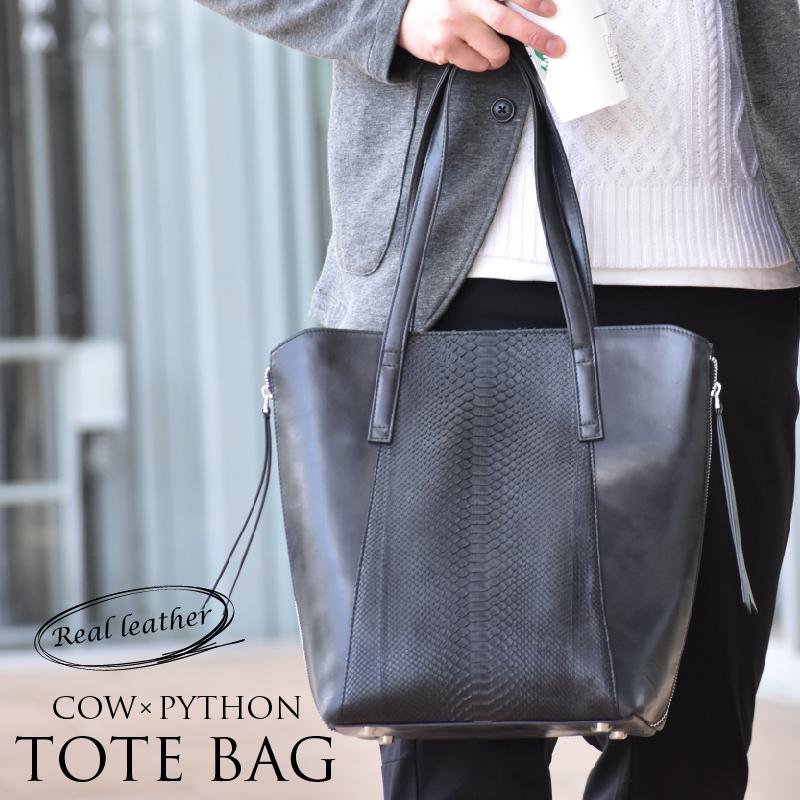 本革 トートバッグ パイソン 蛇革 牛革 メンズ レディース 大容量 本皮 マチ広がる デート 高見え リアルレザー 285 304 Mgsable 通販 Yahoo ショッピング